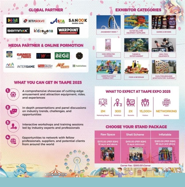 由中國動(dòng)漫集團(tuán)有限公司、泰國COMPASS集團(tuán)、廣東鴻威會(huì)展集團(tuán)聯(lián)合主辦的2025泰國文化用品、旅游裝備及景區(qū)游樂設(shè)施博覽會(huì)(TAAPE2025)是泰國知名游樂休閑類展會(huì)。該展會(huì)設(shè)立了水上裝備、游樂設(shè)施、戶外游樂、電子游樂設(shè)備等多個(gè)主題,展出內(nèi)容豐富多樣,包括IP授權(quán)與合作展區(qū)、衍生品設(shè)計(jì)與制造展區(qū)、手辦與模型展區(qū)等多個(gè)展區(qū)。此次展會(huì)恰逢中泰建交50周年重要?dú)v史時(shí)刻,依托泰國作為東盟樞紐的區(qū)位優(yōu)勢,創(chuàng)新性地將傳統(tǒng)文化用品、旅游裝備與前沿元宇宙技術(shù)相結(jié)合,打造了全方位、多層次的文化貿(mào)易交流平臺(tái)。
