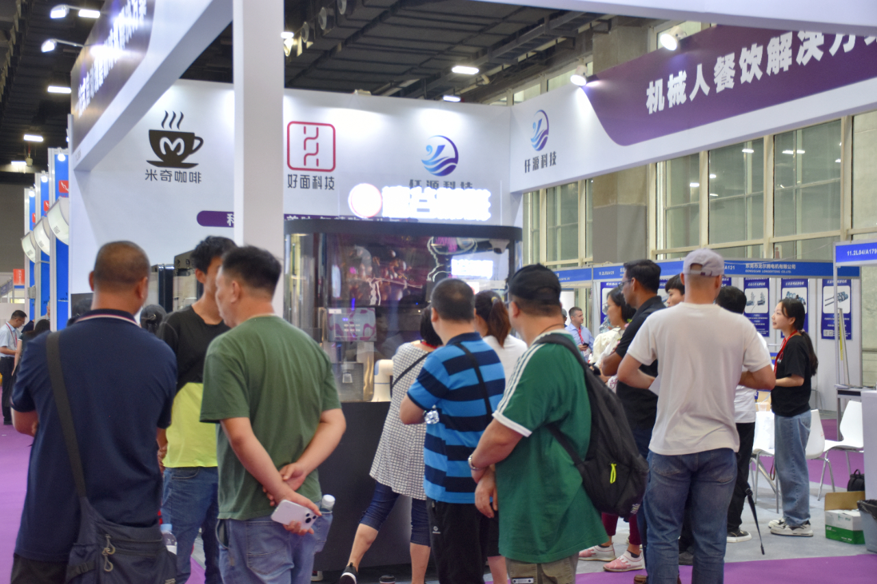 能夠大幅降低人力成本的機(jī)械人餐飲解決方案吸引許多觀眾駐足。
